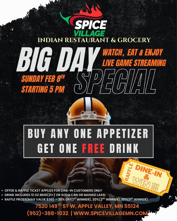 Get ready for the big game!! @ Spice Village*